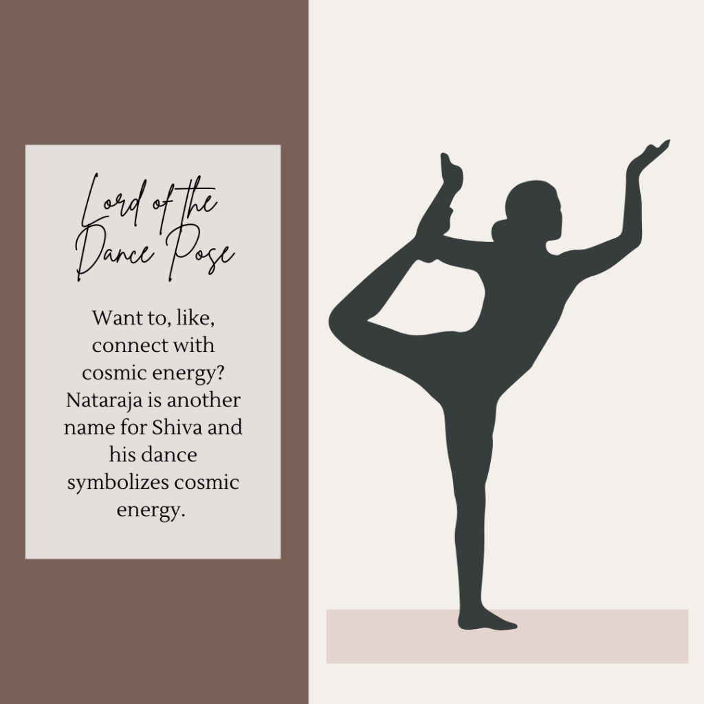 Connect with cosmic energy with Lord of the Dance Pose. Lord of the Dance Pose or Dancer Pose is a standing, balancing, back-bending asana in modern yoga as exercise. It is derived from a pose in the classical Indian dance form Bharatnatyam, which is depicted in temple statues in the Nataraja Temple, Chidambaram.